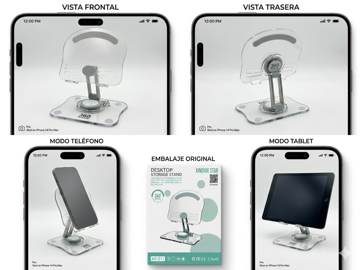 Estabilidad Superior: Base antideslizante que mantiene tu celular o tablet firme mientras trabajas o haces videollamadas.